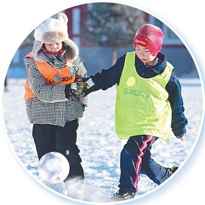 “雪假”期間,內蒙古呼倫貝爾額爾古納市學生參加雪地足球活動。 王 正攝
