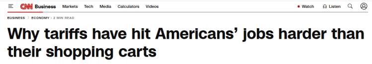 CNN指出,貿易政策的反復調整使不少企業“陷入癱瘓”。大多數企業都在自行承擔關稅帶來的成本上升,而沒有將這一壓力轉嫁給消費者,但這種狀況是否能夠持續,仍取決于政策走向。
