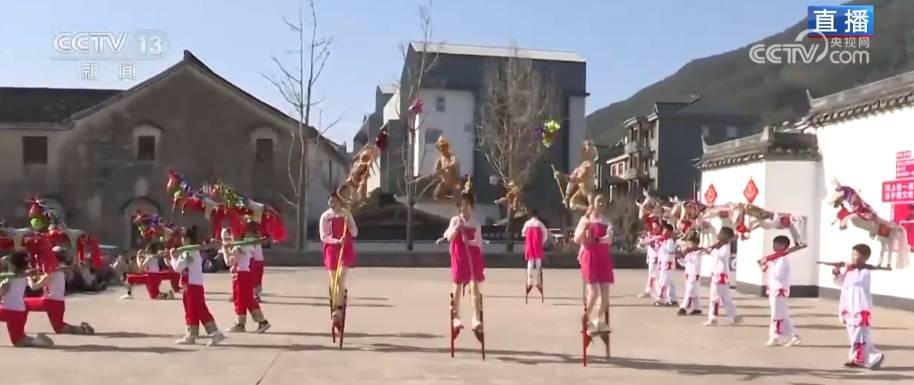 旁邊進行的是踩高蹺表演,和北方高蹺相比,河上鎮高蹺的高度并不算高,但卻格外講究“鮮”跟“活”。小朋友們踩著高蹺,時而轉身,時而跳躍,動作靈動又驚險,這正是傳統文化傳承中最動人的模樣。