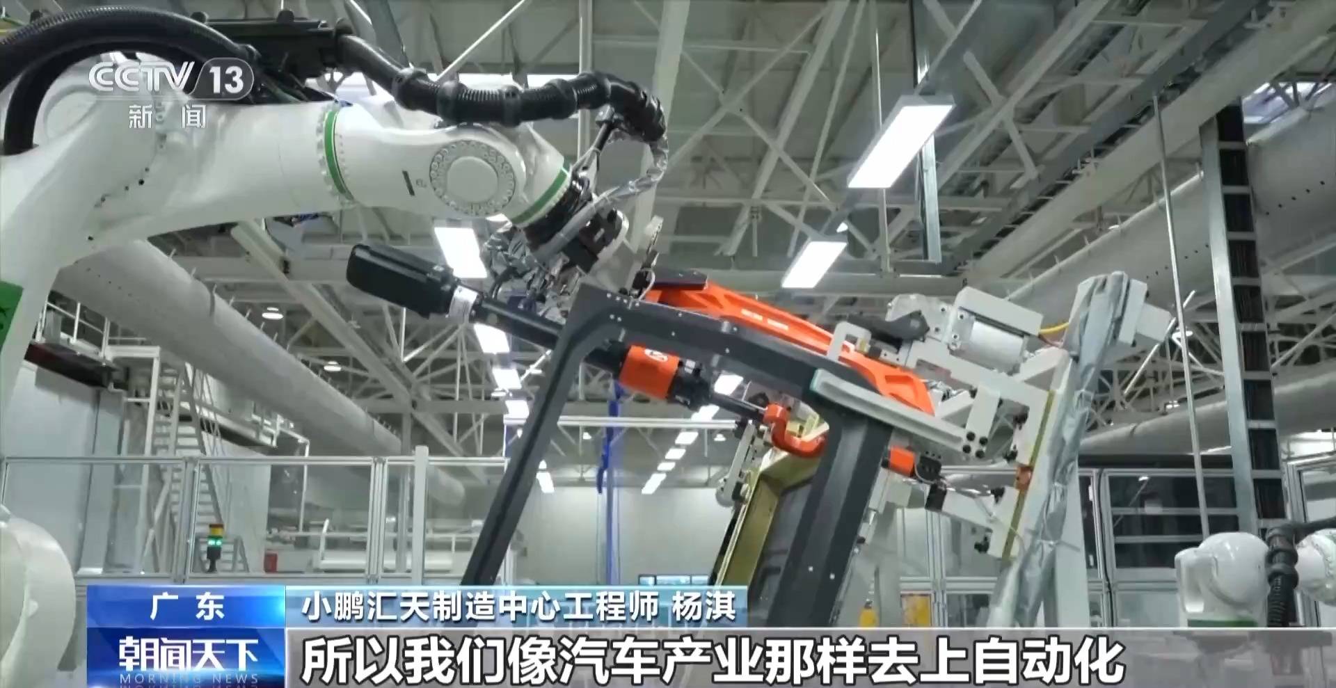 小鵬匯天制造中心工程師 楊淇:因為我們一年要干一萬架,每半個小時就要交付一架飛機。在這個生產效率的現(xiàn)實需要之下,所以我們像汽車產業(yè)那樣去上自動化,就成了一個必然的選擇。